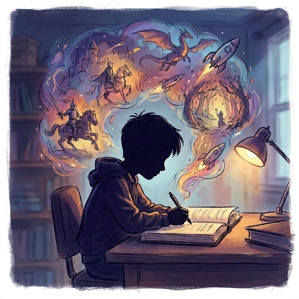 Step-by-step story prompts eliminate "blank page" frustration.
